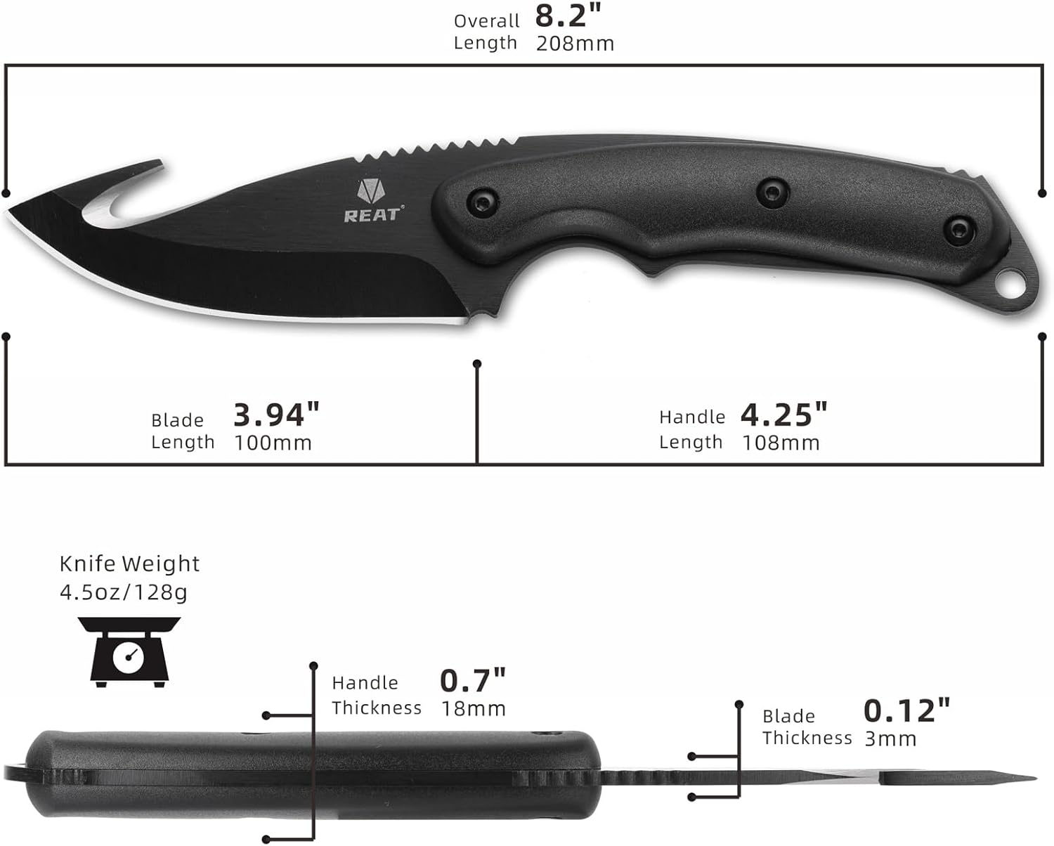 The REAT Fixed Blade Knife is engineered for strength, precision, and reliability in demanding outdoor conditions 🌲. Built for hunting, camping, bushcraft, and survival, it combines a razor-sharp 440 stainless steel blade with full tang construction and an ergonomic grip for confident performance.
