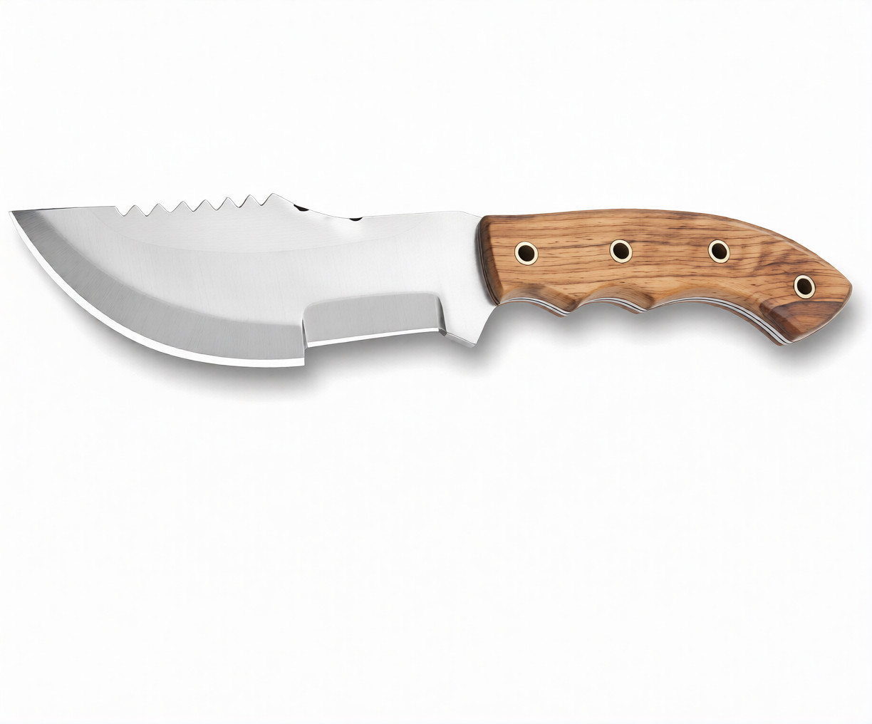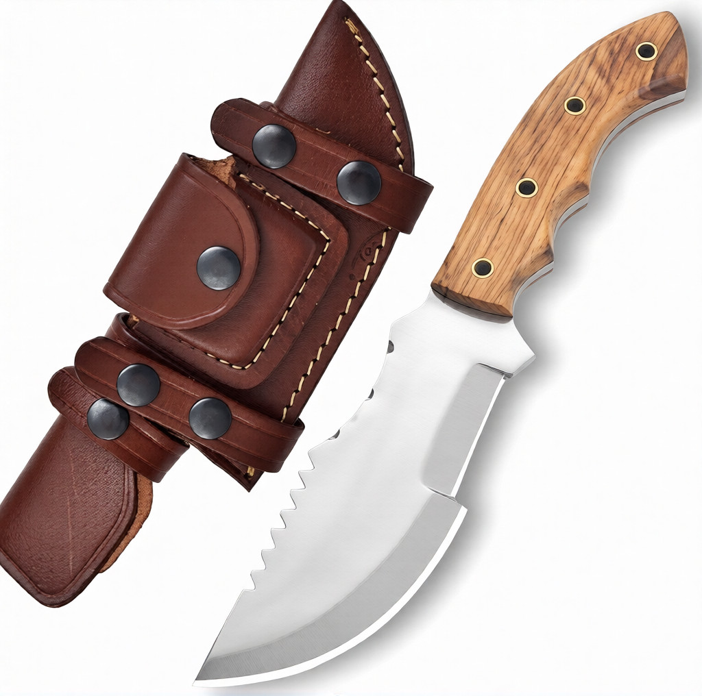 This knife offers excellent rust resistance and long-lasting sharpness, making it ideal for outdoor environments. Its balanced construction allows precise cutting, skinning, and carving, while the olive wood handle provides comfort during extended use in the field.