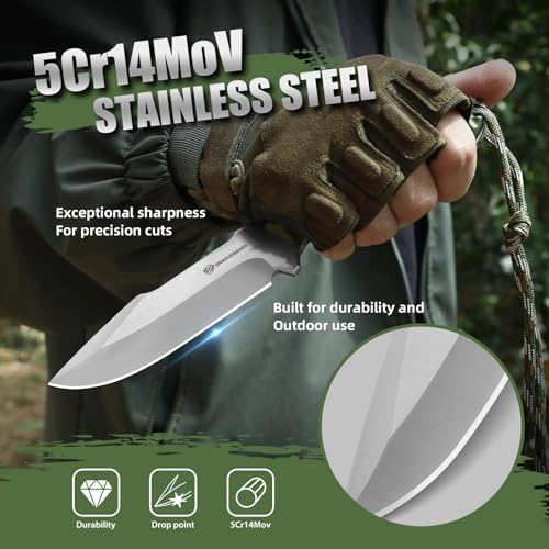The Tactical Knife Fixed Blade is a rugged 5.04-inch drop point knife engineered for bushcraft, camping, and survival performance. Crafted from durable 5Cr14MoV steel and built with full tang construction, this knife offers dependable strength and precision for demanding outdoor tasks.