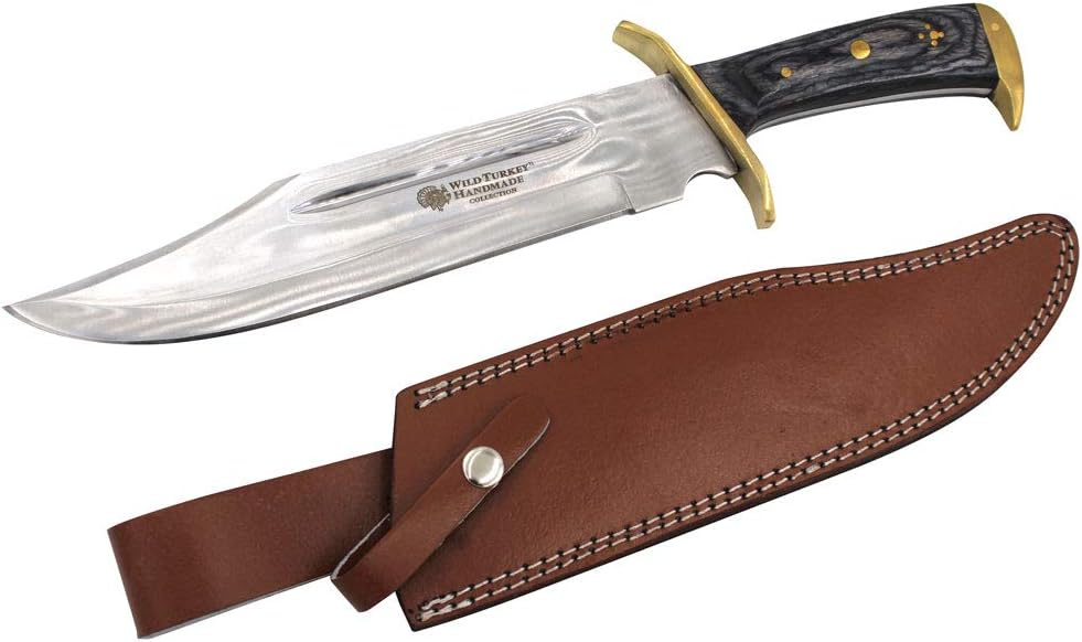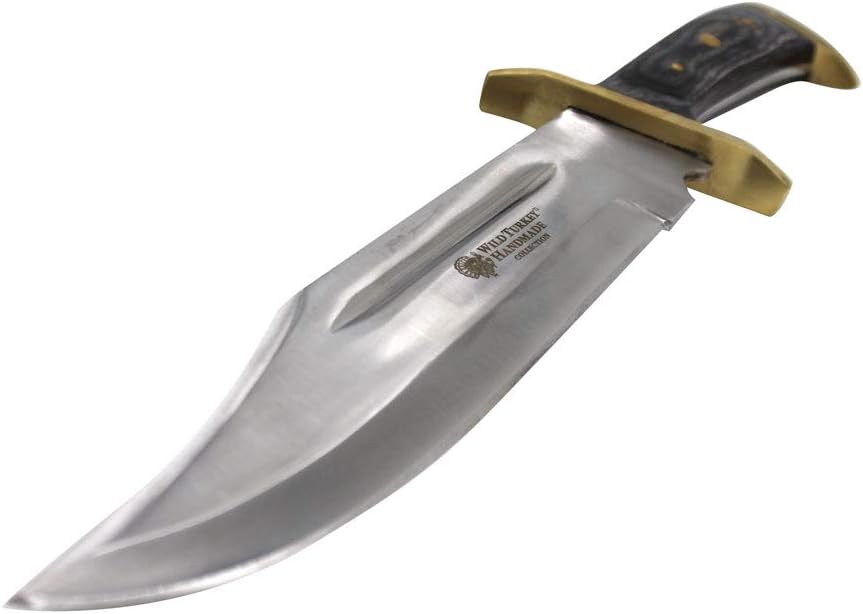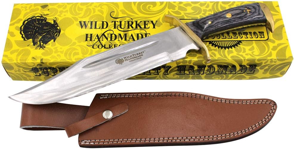 The Western Outlaw Hunting Knife by Wild Turkey Handmade is a versatile 11.25-inch fixed blade knife designed for camping, hunting, and outdoor survival. Its high carbon steel blade, wooden handle, and handcrafted design make it a reliable companion for all your outdoor adventures.